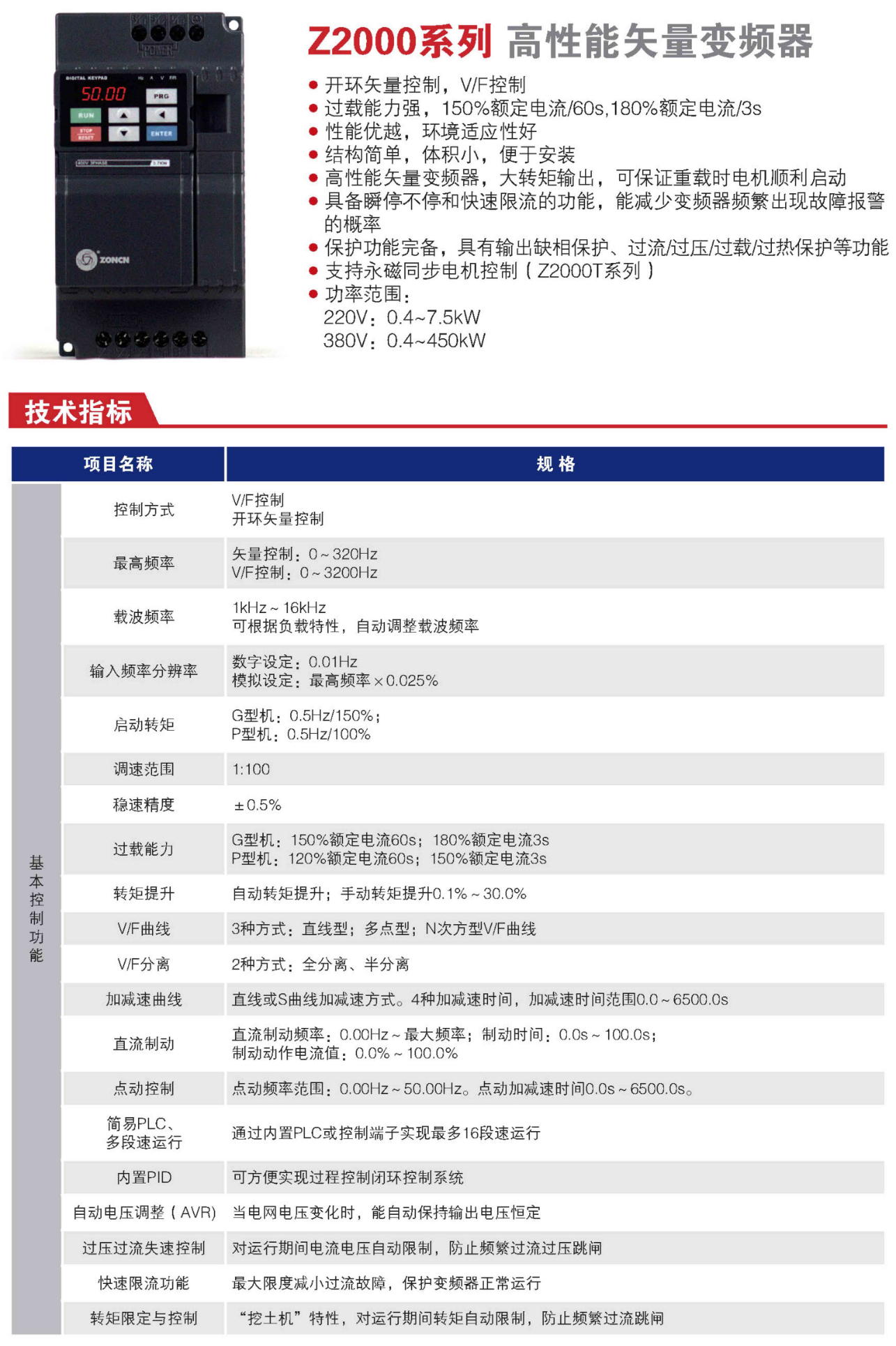 Z2000系列高性能矢量型变频器